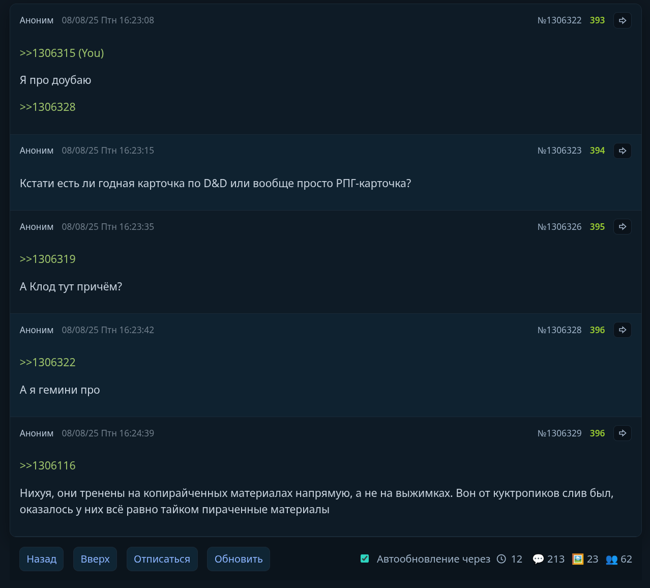 Когда жора открыл глаза на каловость гемини я коупил, что она для пердоликов. Когда соляночник признал 4.1 лучше гемини я коупил, что соляночник слоподел, а не промптинженер. Когда борщевик бросил гемини и ушел на соннет я больше не могу коупить.