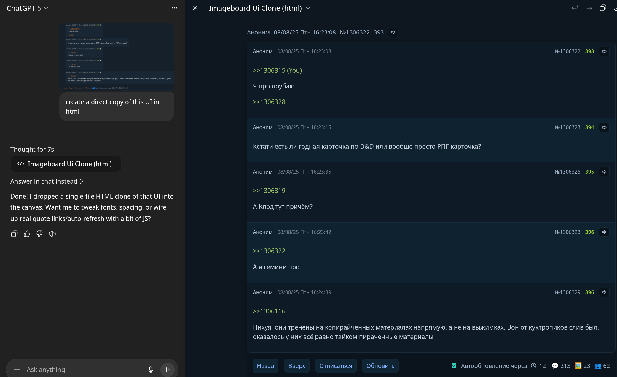 бляяя я ебал новый пресет дяди шутника хохотуна такое выдает на гпт 5 high. и поржать и покумить одновременно можно. почти так же хорошо, как на гемини 2.5 про