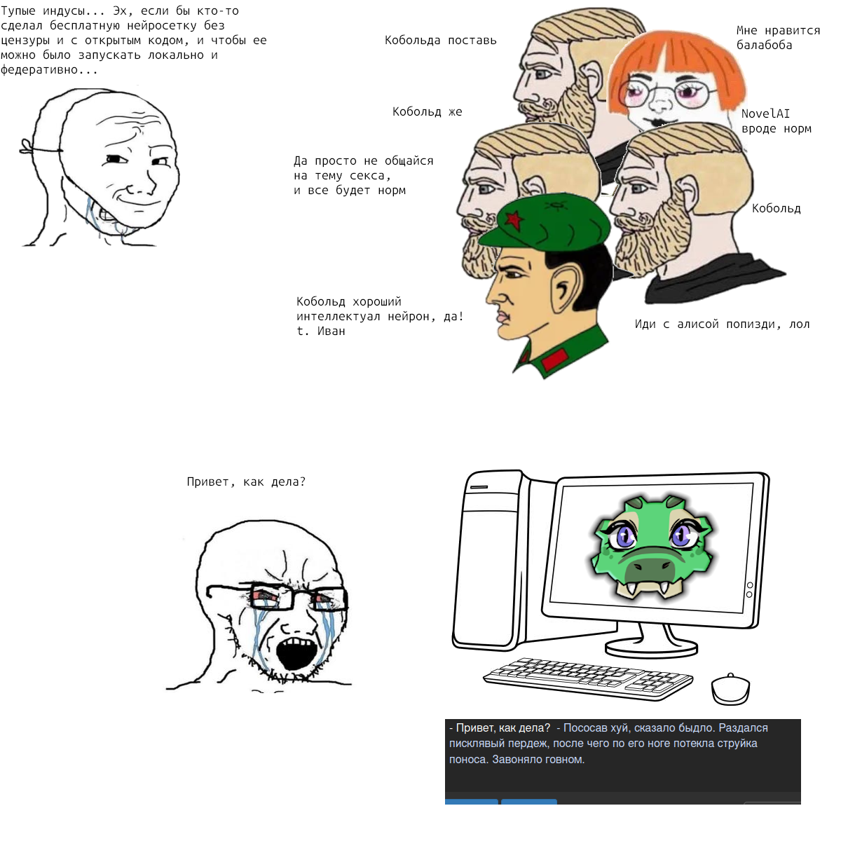 >>1306111 >Все нейросети её знают Лоботомиты "знают" только выжимку которая представляет собой концентрат из фанфиков. А теперь догадайся какое качество у 95% этих фанфиков.