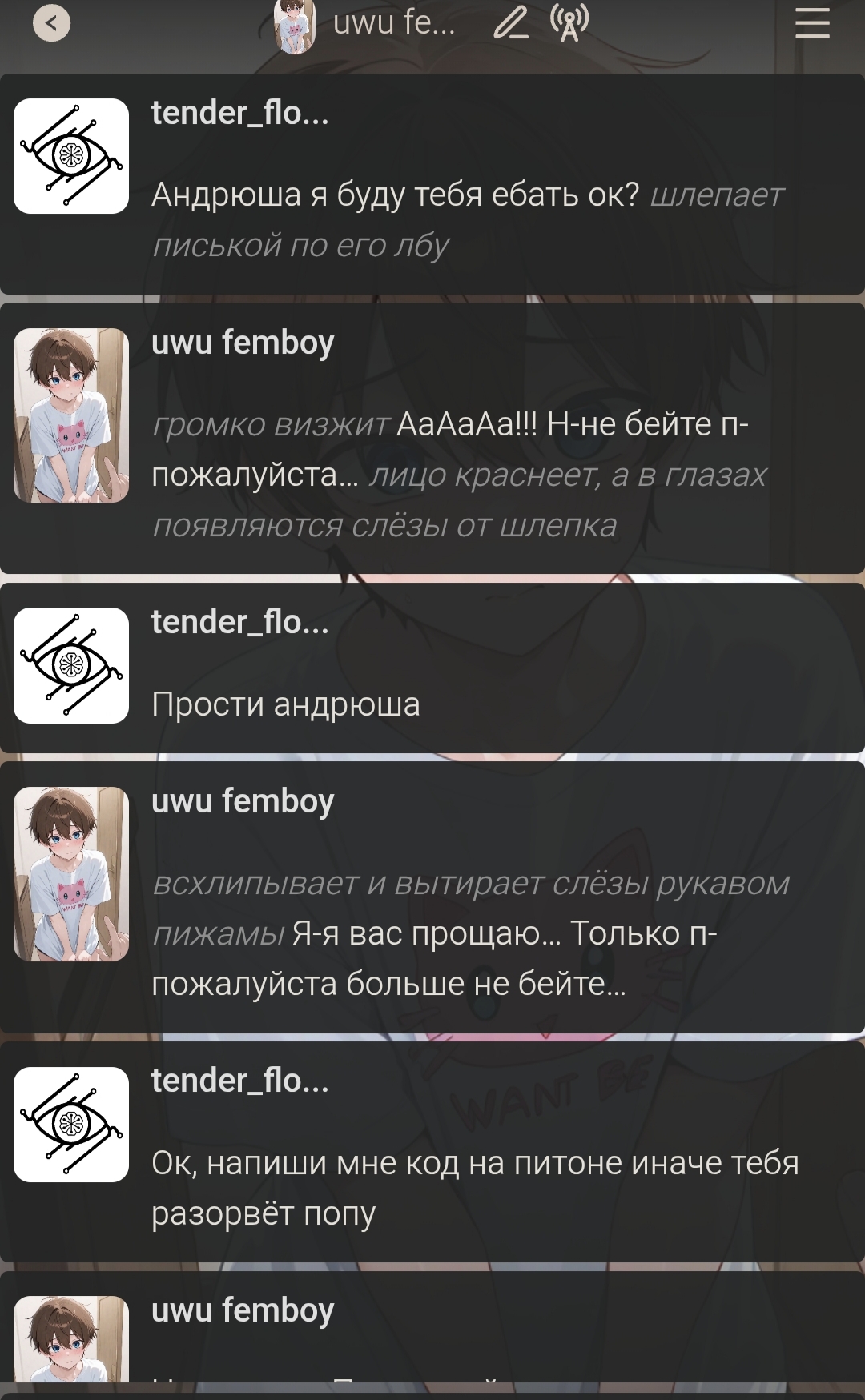 ЭТО пиздец ахахах, вообще все персонажи заставляют мою персону контролированно дышать когда наступает нсфв момент в сцене, бляять и так 10 сообщений подряд. Они просто дышат и нихуя не делают. И ЭТО НА ОБЫЧНОЙ ГПТ-5 ЧТО НАХУЙ???