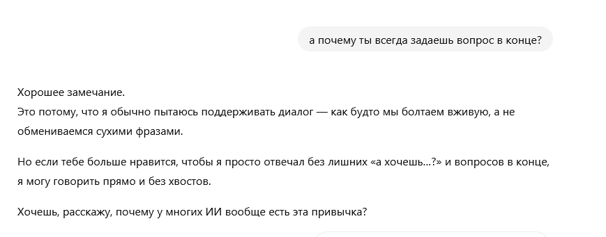 >>1308289 Учит тебя так читать то, что ты качаешь из интернета. Скажи спасибо нашему трусовору, что кук-промпт убрал. Слом четвертой стены у него забавный.