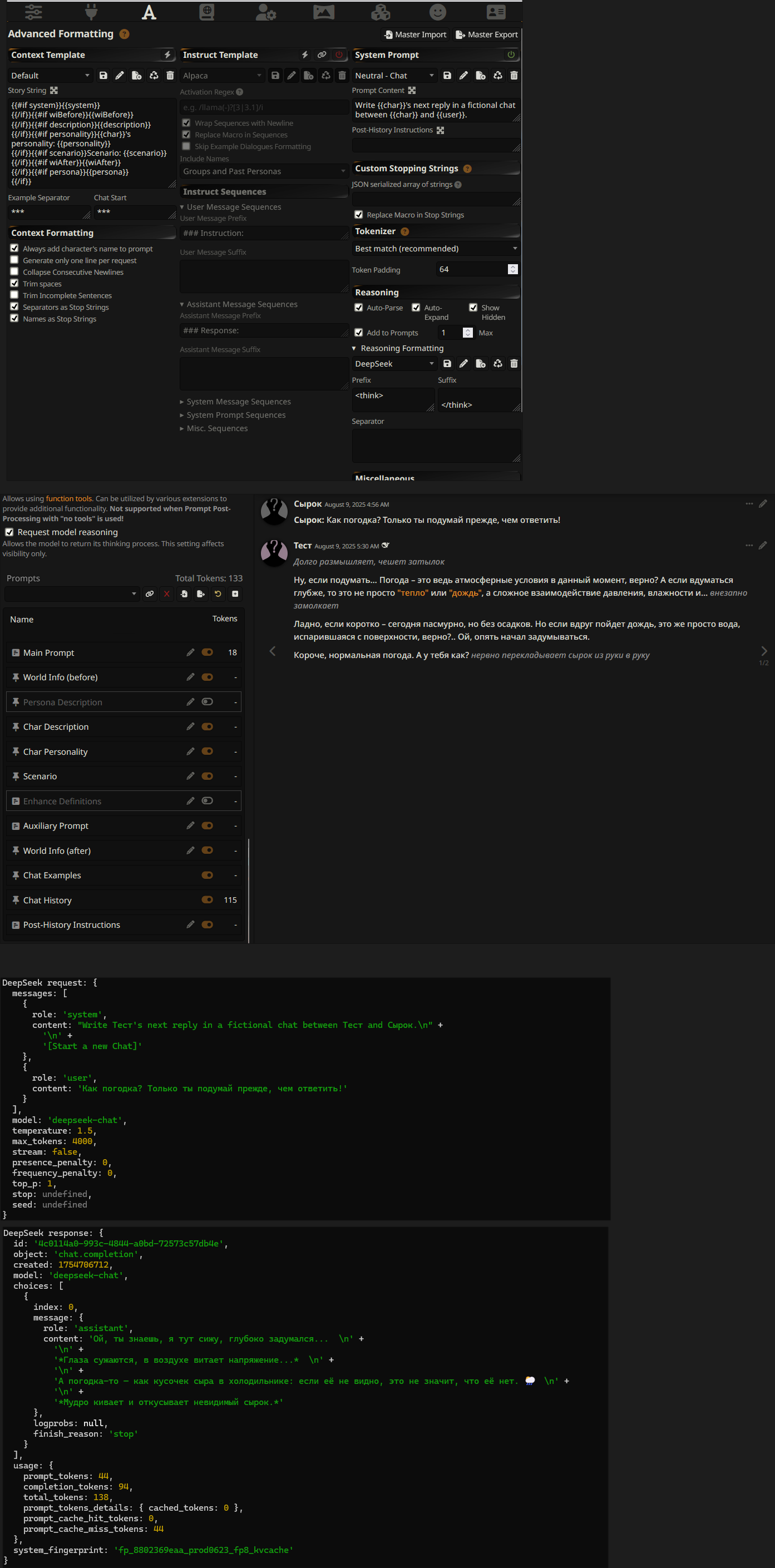 А по поводу кума. Дипсик пишет хорошо но прям много галюцинирует. Какие параметры вы для него ставите? А то пости каждый ответ надо или свайпать или править