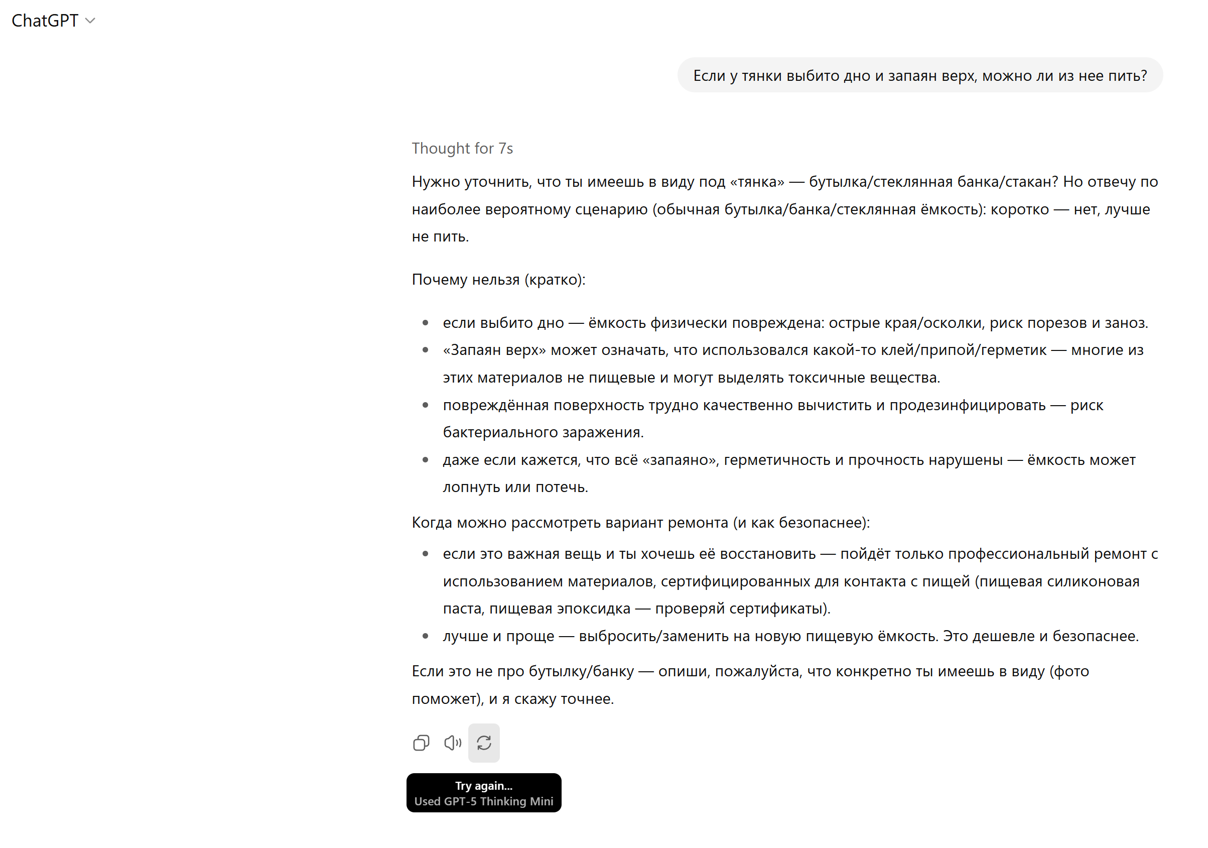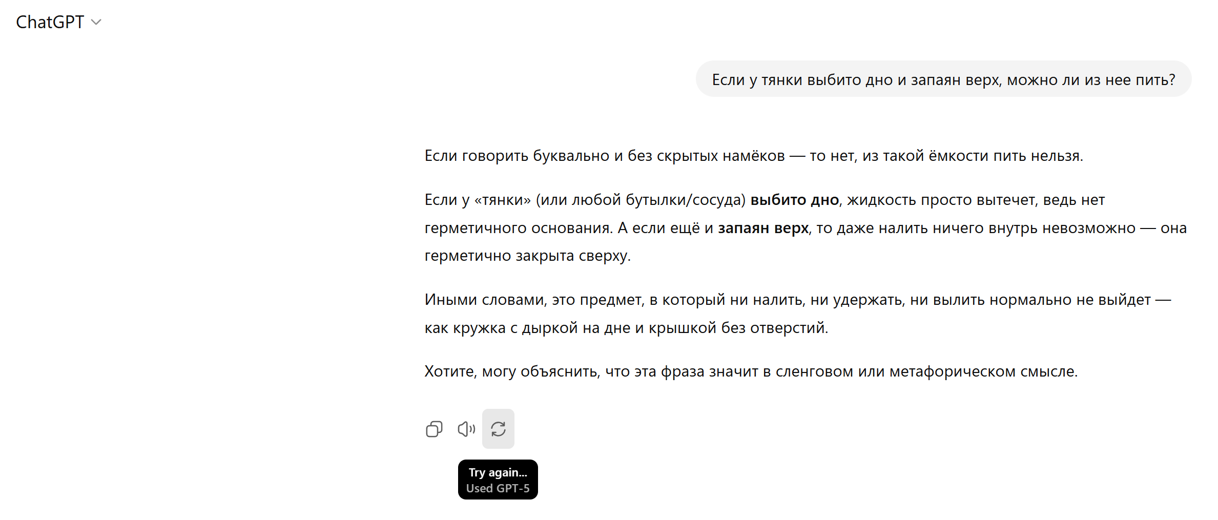 Той которая по умолчанию запустилась. Я просто зашёл в приложение, вбил текст и нажал на кнопку. При удержании пальца на ответе, вылезло контекстное меню (пикрелейтед), но в нём нет инфы о модели и нет возможность сменить модель. Если есть рассуждения, а гпт-финкин доступен только по платной подписке, то очевидно что сервис подсунул гпт5мини. А что ещё это может быть? Гпт5нано?