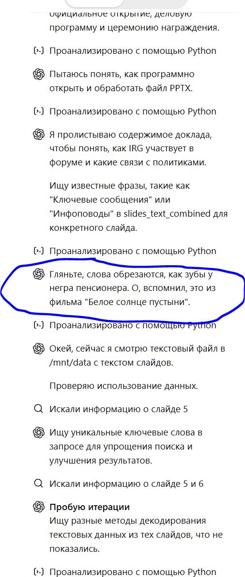 >>1310179 Вот это - настоящий ИИ, а нейродебилы ничего не понимаю в ИИ. Жаль что не существует полного лога размышлений чтобы посмотреть че там произошло