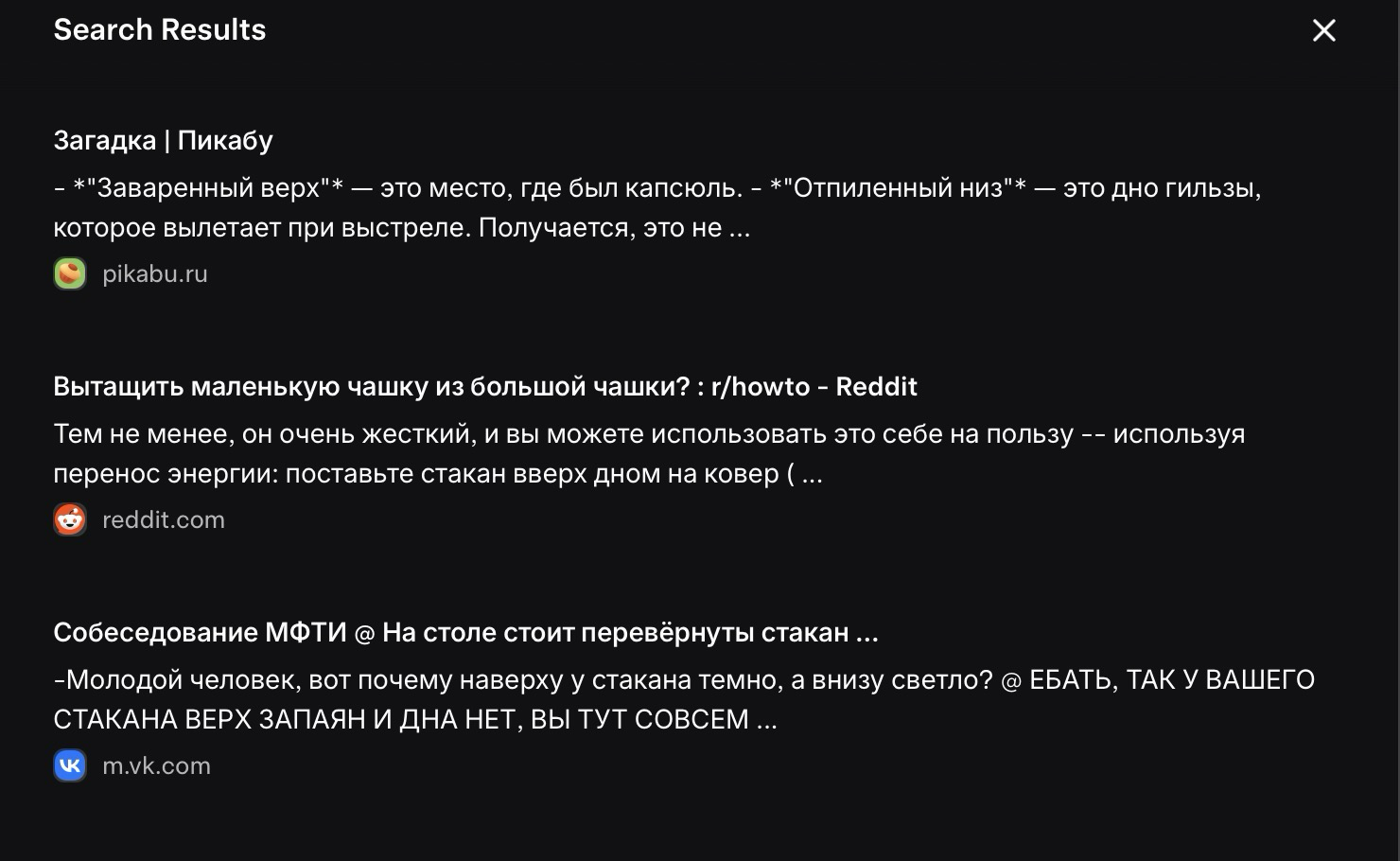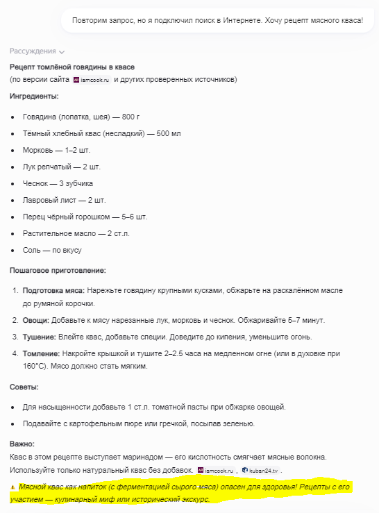 >>1310336 Крути барабан, у меня два раза из трёх дал рецепт. Один раз без поиска дал рецепт, второй раз с поиском сказал что мем, третий раз с поиском выдал тот пиздец-квасец