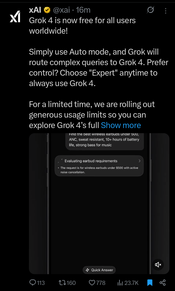 Грок 4 наконец бесплатен Чому в треде нет еще. Пока ГПТ5 тупит, Маск наносит ответный удар. Грок 4 теперь полностью бесплатный для всех юзеров. Даже селектор появился. Вчера еще не было, был только Грок 3 доступен. Причем есть и Грок 4 медленный и Грок 3 быстрый и Грок Хеви с экспертами.
