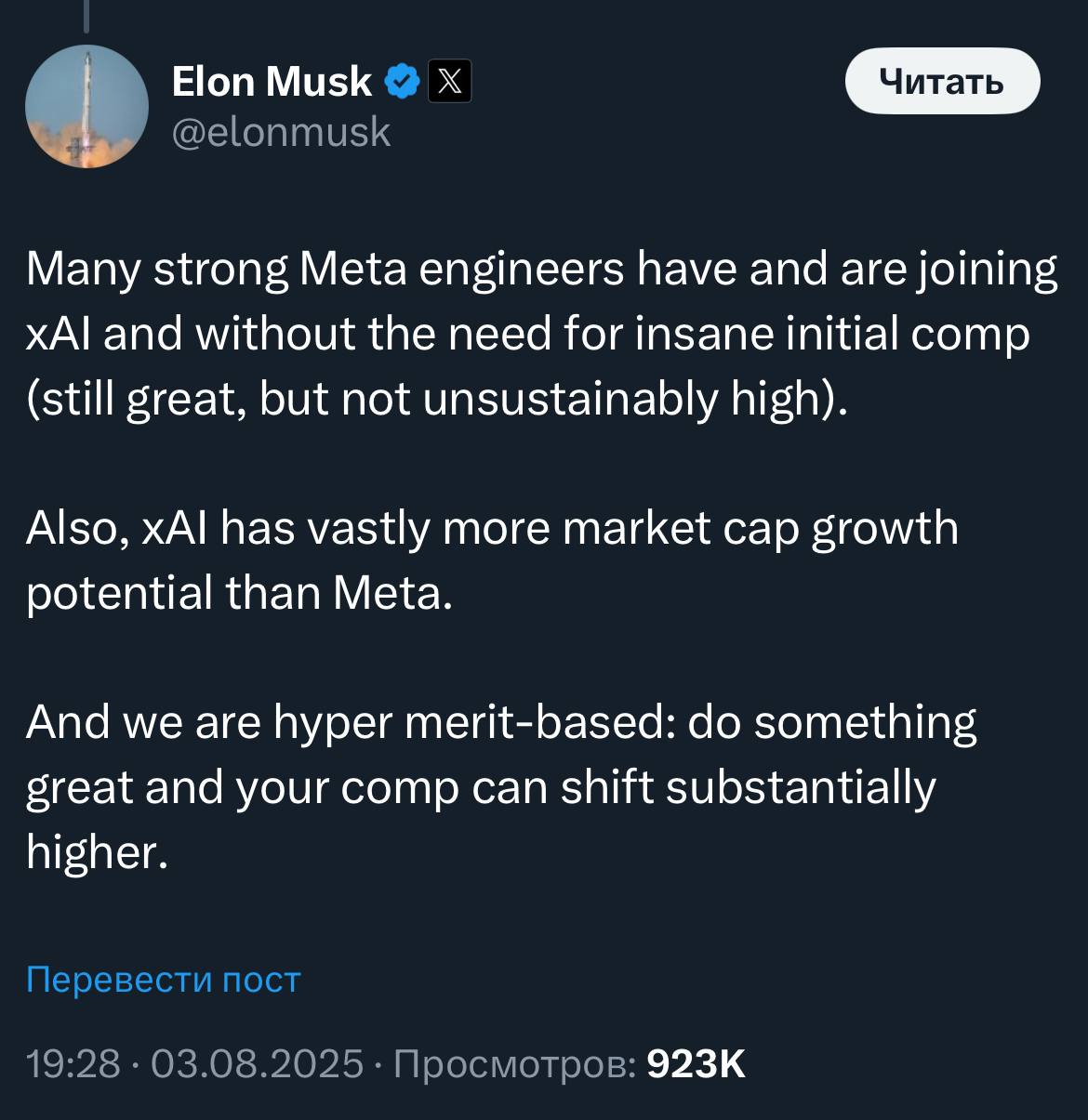 Пока Цукерберг забирает талантов из OpenAi, Илон Маск забирает таланты у Meta