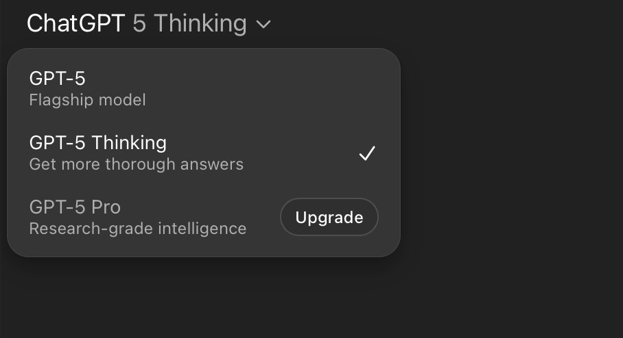 А разве мы не пользуемся буквально разными моделями? Гпт5 в нескольких версиях же, лол. Их минимум штук пять вроде, насколько помню. Базовая нерассуждающая пятерка, 5-мини, 5-нано и 5-финкин. А 5-про это походу 5-финкин но с большим количеством размышлений.