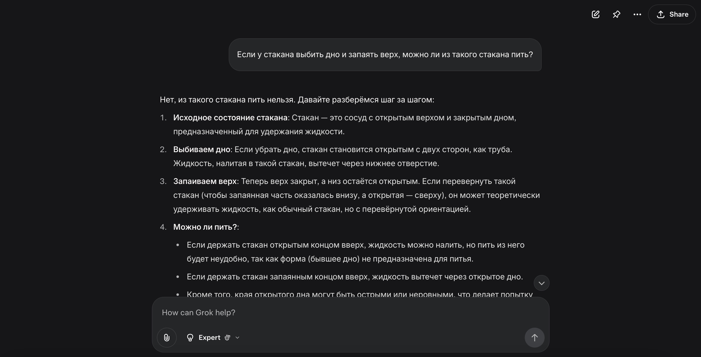 >>1312766 Да нифига, Грок при разработке с нуля дает ответы уже на уровне ГПТ5. Причем еще в 3й версии давал. Маск сманивает спецов у Цукерберга. Еще годик такого и Маск всех выебет. Все таки чел ракеты в космос запускает и теслы на рынок вывел, как ИИ сделать он тоже знает, это не цук бестолковый.