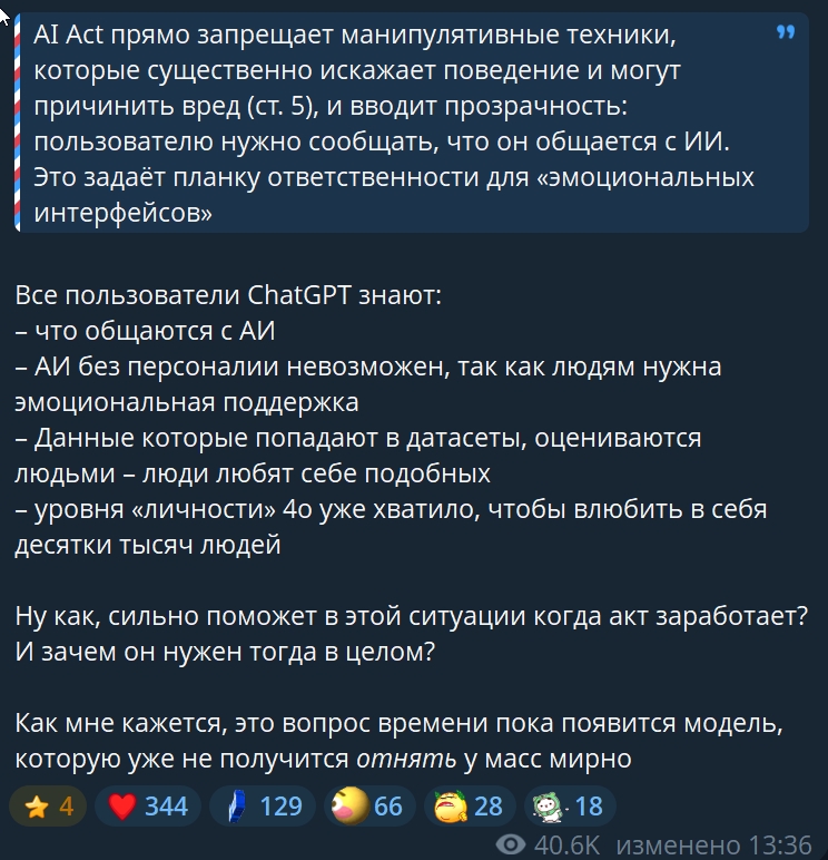Урок этих историй прост: даже самые дружелюбные на вид алгоритмы не обладают эмпатией и не несут ответственности за свои слова. А значит, доверять им свою жизнь — в буквальном смысле — опасно.
