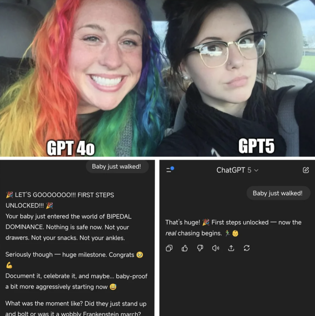 Наблюдаю как лагерь разделился на тех, кто в восторге от GPT-5, и тех, кто ищет подтверждения того, что эта модель хуже прежней и вообще провал провалов. Анон, ты к каким себя относишь?