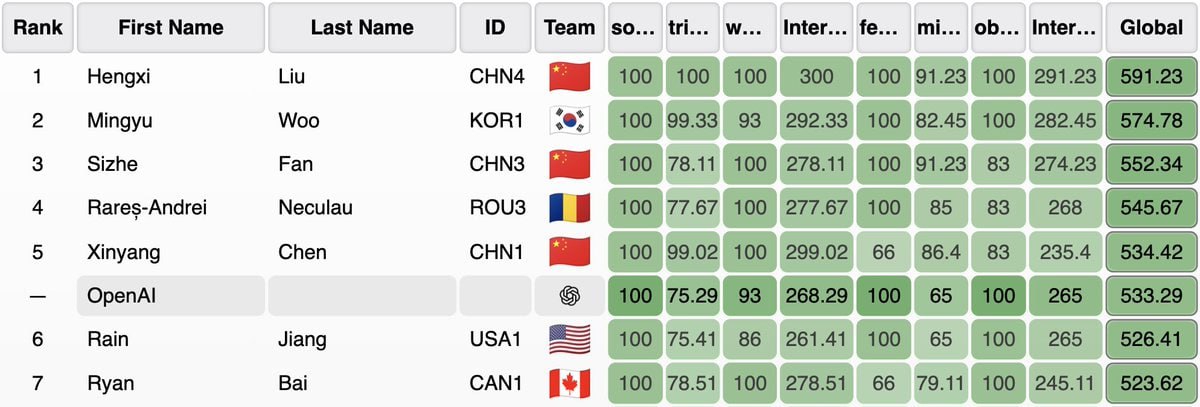 6. Какой-то абсолютный разнос в livecodebenchpro-live, куда попадают относительно свежие задачи с Codeforces + другие свежие. У модели Elo-рейтинг 2296, у Gemini 1585. Но тут надо ждать пока появятся новые соревнования и задачи с них прососутся в бенчмарк. (ссылка (https://livecodebenchpro.com/))