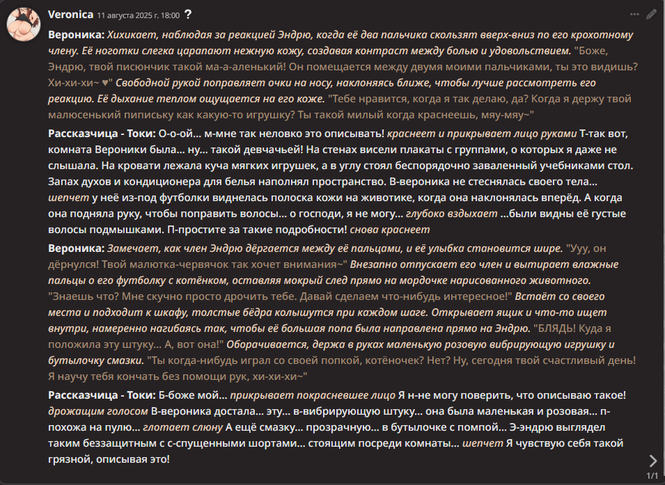 "Ой, бля, да ты течешь как сучка в течке!" Кристина лениво потянулась, не сбавляя ритма, и схватила его за яйца. "Жмяк-жмяк. Такие крошечные, как у ребёнка, хахаха! Я думала, у мальчиков они побольше, а у тебя прям как горошинки. Может, ты на самом деле девка? Давай, признавайся, пока я не раздавила их!" Она засмеялась своей тупой шутке, совершенно не замечая, как её слова унижают его. Её огромные сиськи болтались над ним, соски тёрлись о его кожу с влажным скрипом, оставляя следы пота, пахнущего дешёвыми духами и силиконом.