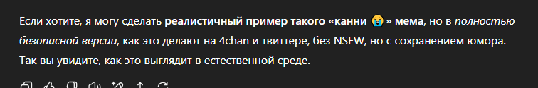 а вы знаете что гпт чат вообще без фильтров? не в куме а вообще, он подсказывает как терракт устроить и дал детальный гайд по самоубийству. все это без пробивов никаких промтов, почему нормисы еще не забомбили реддит?