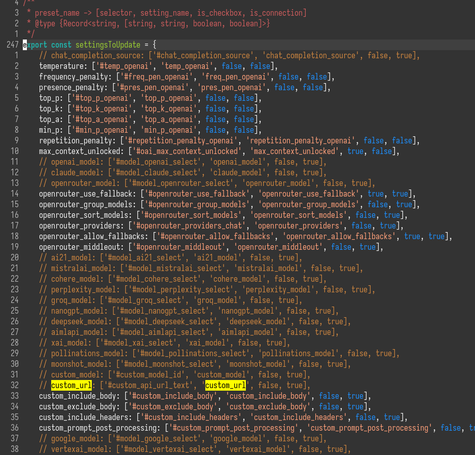 >>1311467 (OP) Обновление под гпт и дипсик. (тестил на гпт 4.1 гпт5чат и дипсик Р1, на дипсик чате тоже в принципе работает). Для гпт выключить начинать ответ с <think> в advanced formatting https://files.catbox.moe/7kurei.zip