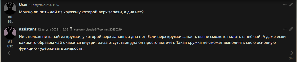 >>1314167 У всех лоботомитов юзабельно максимум до 10к с заметной деградацией после каждой тысячи. Дальше идет игнор всего кроме стартовых 2-3к и финальных 4-7к. После 30к помимо игнора идет еще и шиза.