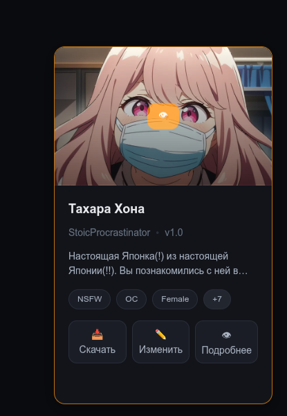 >>1308884 → Всем привет. Я тот самый анон, о котором говорилось в этом посте. Я довольно долго делал карточку свинодевочки, которую постоянно реквестили в треде и умоляли сделать по ней карточку и вот наконец-то я её доделал.