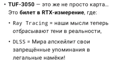 >>1312295 Ты и с текущими карточками логов не кидаешь, почему вдруг начнёшь с конкретно этой? Кидающий логи кинет и с подругой-томбойкой на 100 токенов с пигмы, а некидающий не кинет и на 10/10 карточке по личному реквесту на топ модельке. (С) Кумфуций, наверное.