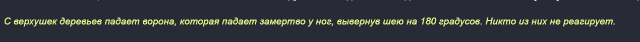 >>1312114 >Хочется не полной заскриптованности как в The Rite of Belwick, но и не полного сэндбокса. А чего именно хочется? Ты бы определился. Пока то что ты описал звучит как фиксированный сценарий по фиксированным зацепкам, которые вполне себе можно прописать цепочкой триггеров как в белвике. Ну можешь генерить зацепки и даже конкретный детективный кейс в сетвары, в первых сообщениях.