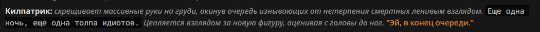 Если у тебя РП про бухалово в падиках девятиэтажек, очевидно что там дохуя плохо переводимого культурного контекста и дефы лучше писать на русике. И то не факт, вон мкмл свою Полынь писал на 90% на англюсике кроме отдельных ключевых слов, и получился кондовый абсурдистский постсовок безо всякого гуглтранслейта. А если это перс из блю говна какого-нибудь, или ещё чего-либо вообще никак не связанного с рюсиком, какой смысл в этом? На рюсике только хуже поймёт. Это тебе надо пруфать что-либо, давай сравнения (тут кстати постили когда-то вроде, можно ещё).