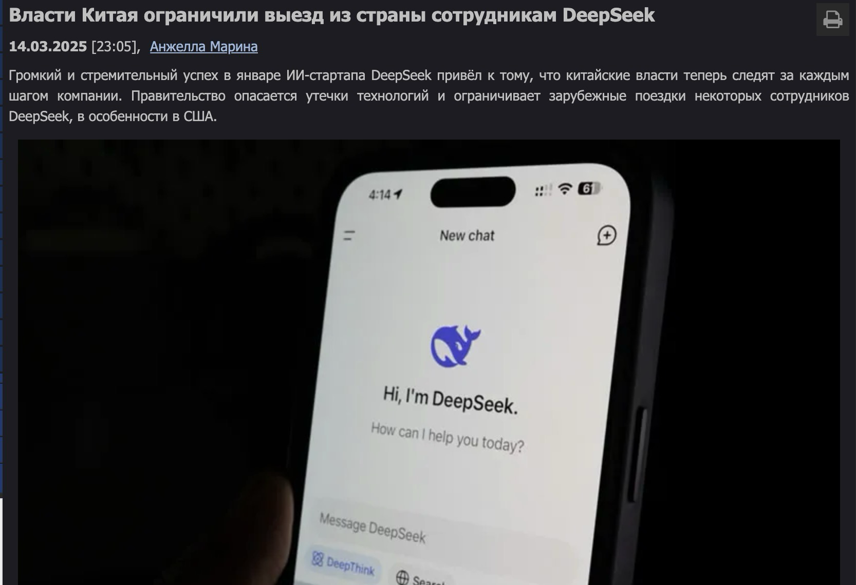 Китай серьезно отстает в вычислительных мощностях. Передовые ускорители в Китай поставлять запрещено. Им достаются огрызки, и возможности запилить полный цикл производства в ближайшие годы у них нет.