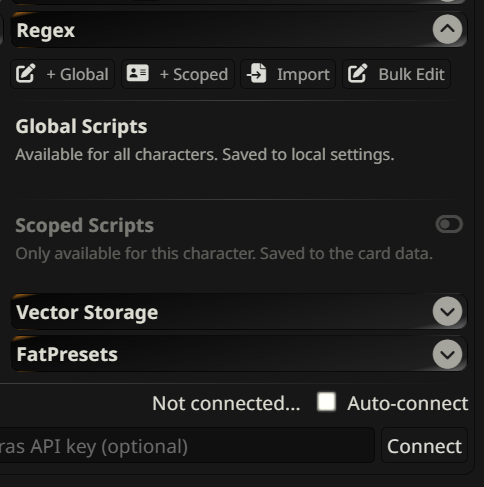 Короче со своим ключем сумел завести но этот еба конструктор нагородил тыщу костылей чтобы достичь того что в таверне и так изначально есть. Ну хорошо добавил ты авто суммарайзы там, кучу полей с инструкциями, целями, контекстом и лорбуками. Все это уже есть в таверне и не требует целого еба комбайна с ей ай генерацией на каждый чих. Переизобретает велосипед с целой кучей отдельных костылей которые жрут рейт лимит как не в себя и вообще никак не интегрированы в уже существующую экосистему карточек. И при этом даже если заморочится какого то супер пупер эффекта это тоже не принесет ведь ты все еще просто отправляешь сетке стену текста как и раньше, единственное преимущество только в том что промпт разбивается на множество индивидуальных кусков которыми можно манипулировать как тебе угодно. Но на практике ты шлешь условной гемине "сделай суммарайз - подумай над ответом персонажа - выдай ответ и все это взаимозависимо но при этом каждое это отдельный реквест сетке а не как в таверне где все идет за одно сообщение.