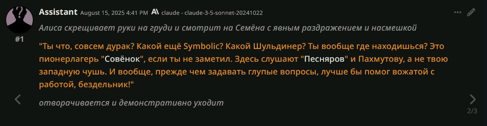 Как же больно, как же больно на душе, когда вы упоминаете клод 2 и гпт 4.5. вы бы знали особенно когда логи прям под носом, а память ещё свежа по ним, грустно.