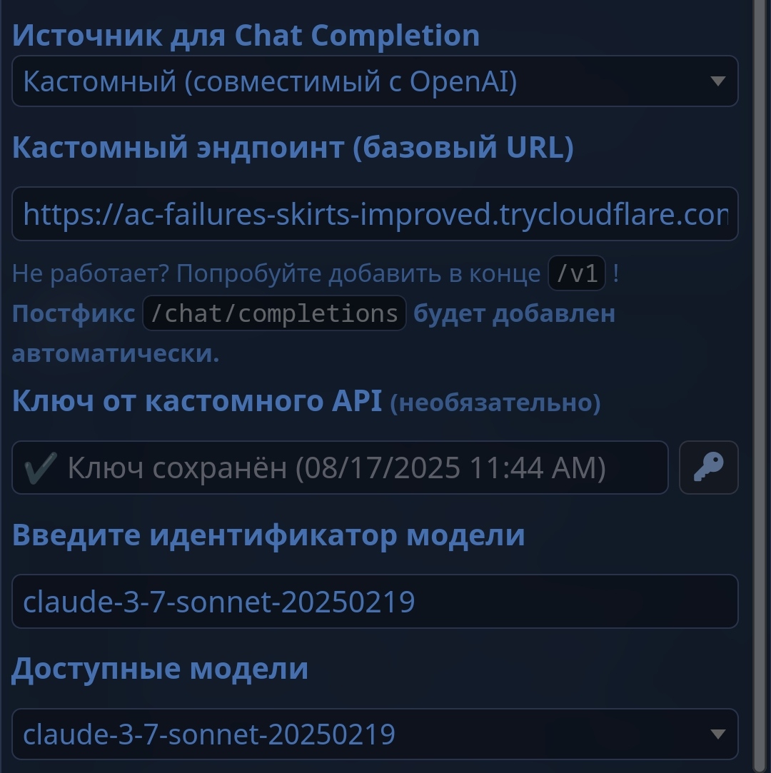 >>1323831 Таймаут какой-то на стороне сайта. У тебя именно на этом пресете и именно на этом клоде по именно этому адресу не работает, любая другая конфигурация (Смена пресета или Клода) по этому же адресу работает?
