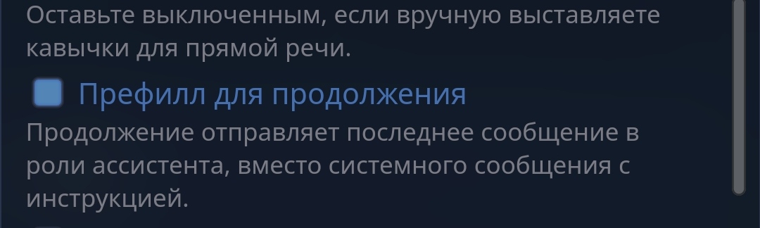 Аноны, я все ещё не вполне понимаю суть префилов. Возможно кто-то сможет чуть детальней осветить вопрос? На примере дипсика, вынося за скобки концепции вроде пробития фильтров. Здесь: https://rentry.co/aui3u префил выглядит скорее в форме инструкции. И я не могу понять для чего эта инструкция оформлена именно в качестве префила? Почему то же самое не дописать в юзерский запрос, в систем или в ассистента на некоей глубине? Почему именно префил? В самой статье префилы упоминаются как "anti-pozzing" механизм. Но что за pozzing такой?