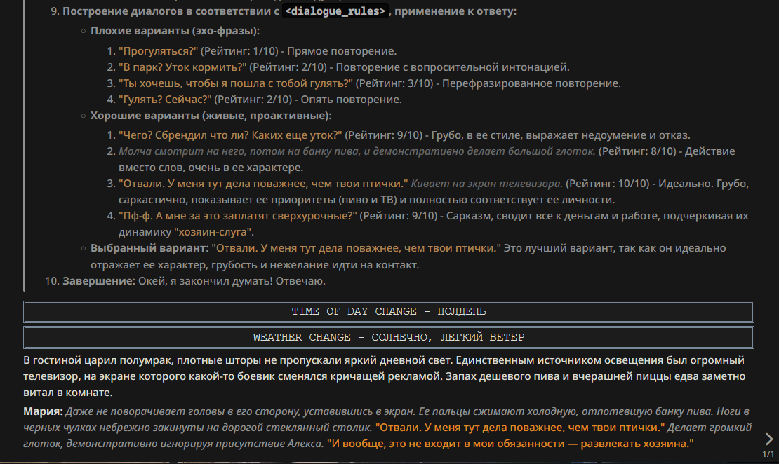 В общем пока такой промпт, посмотрите может можно как-то улучшить, в принципе как работает мне нравится. В думалку только воткнуть надо, но в принципе можно и без кастомной думалки геминя все равно подхватывает.