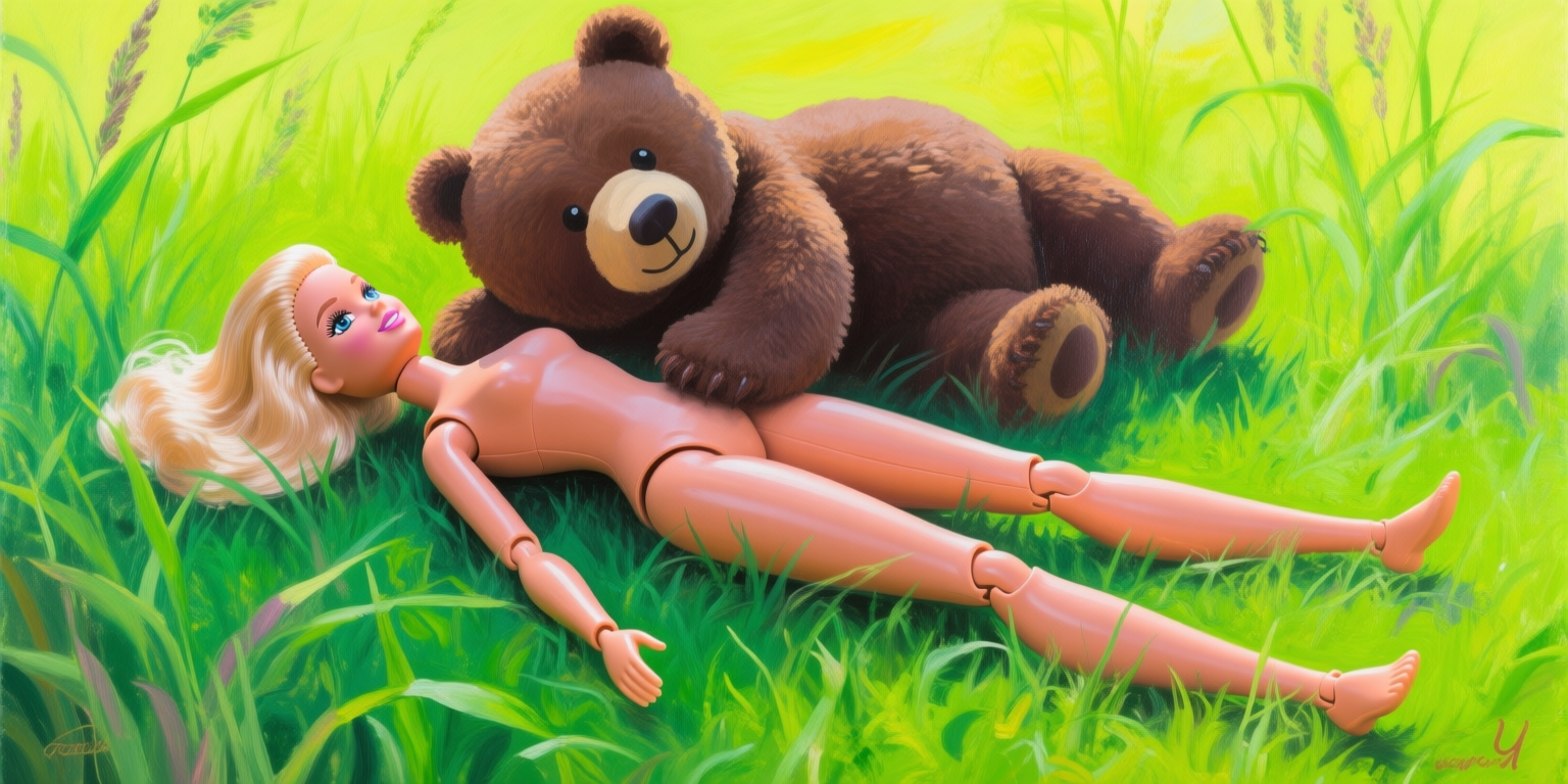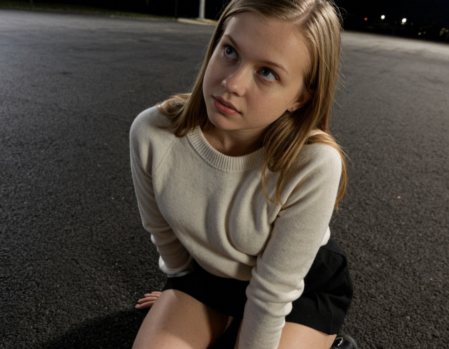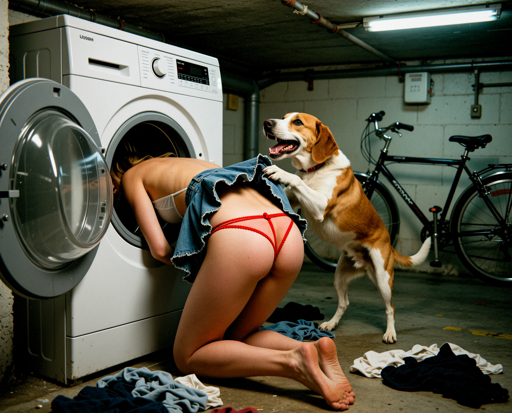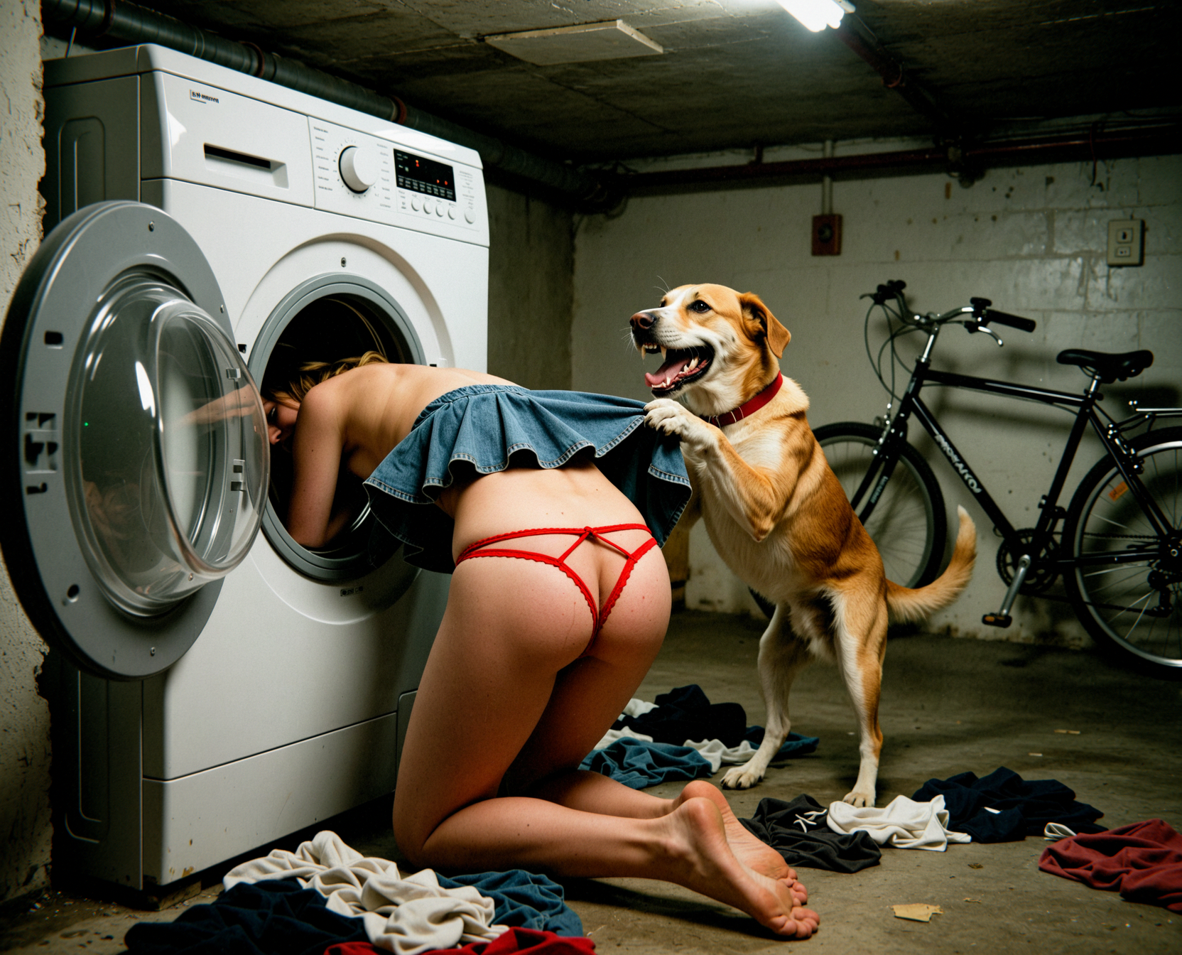 >>1329144 candid photo of a skinny young woman in a sweater over her gigantic breasts and short skirt sitting on a blanket in a park, her legs are spread apart exposing red panties, she is tilting her head slightly and her short blond hair is partially covering her eyes, in the background are two dogs, a larger dog is laying on the grass while a smaller dog is on top and behind the first one with his front paws resting on the back of a larger dog and his hind legs on the ground, and the woman is wearing stockings, in the background there is a sign with dog in a crossed out circle and the text 'No humping', and there is a marching band in the background in scottish kilts walking far in the distance, and a ballerina cat dancing on the side of the image