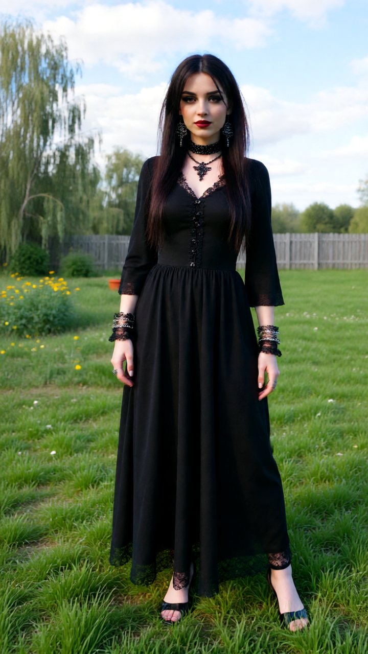 Еще попробуй тупо написать >she is wearing a red dress как тут