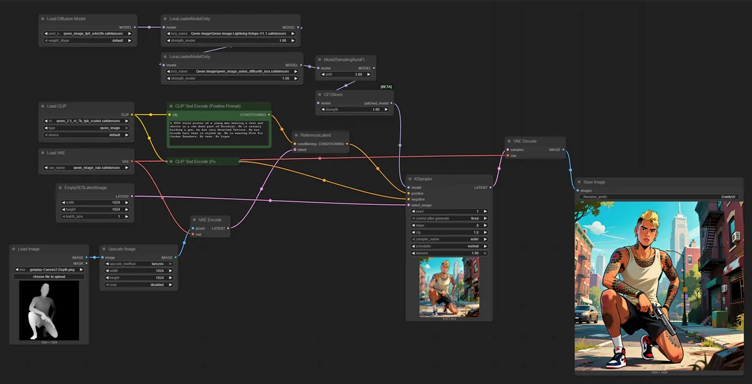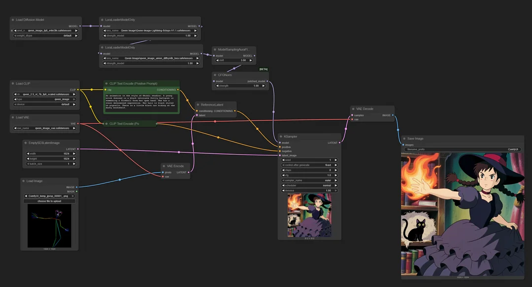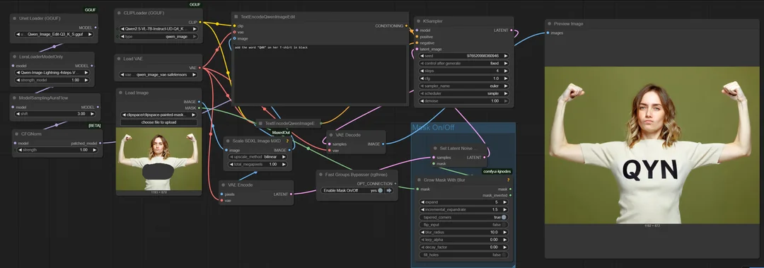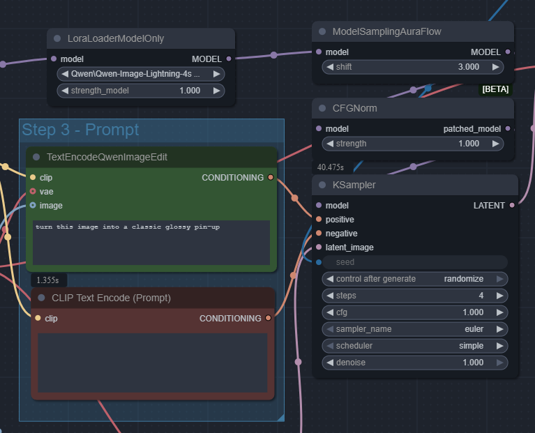 Еще если вам не нужен негативный промпт на Qwen Edit, то можно не пропускать картинку через второй энкодер на квен эдит и поставить вместо него пустой обычный.