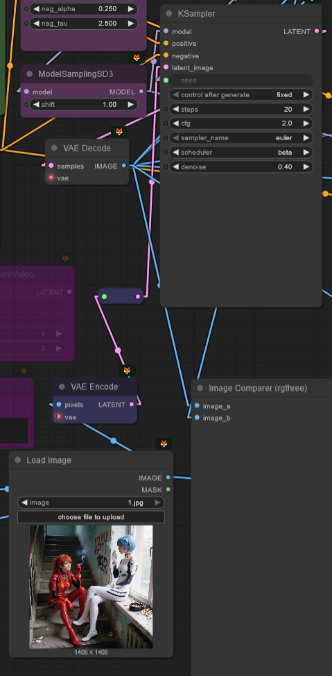 >>1326807 избавляюсь потихоньку от пластика по совету анонов прогнал через ван смотрится лучше и по этому поводу вопрос правильно ли юзаю воркфлоу немного изменил t2v и подал просто картинку в семплер