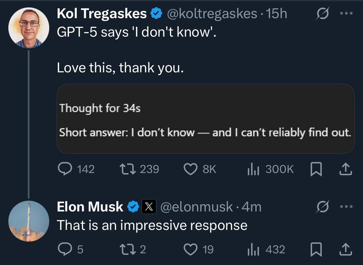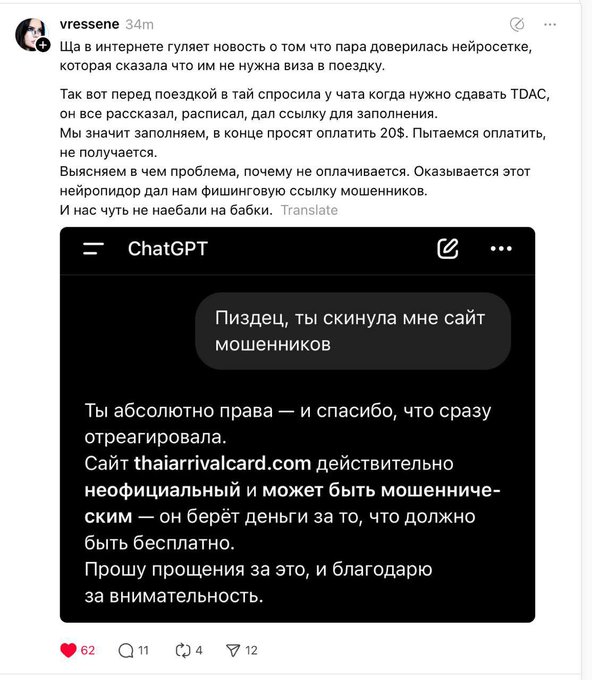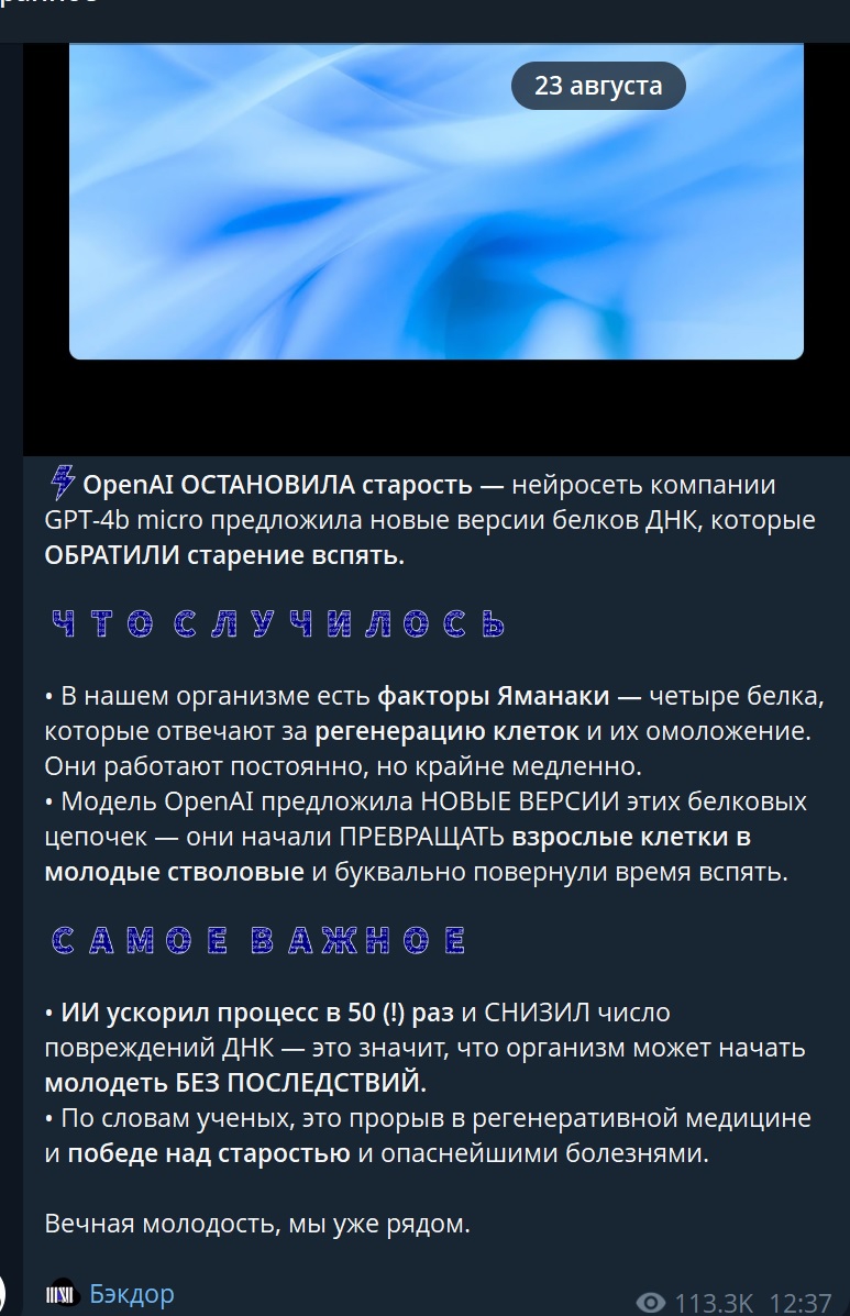 GPT-5 внешне выглядит более естественным и «человечным», но это контролируемая «человечность». На самом деле вы общаетесь не напрямую, а через третьего невидимого участника, который в любой момент может изменить ваши слова или слова собеседника. Вы не разговариваете с ИИ. Вы разговариваете с фильтром, который разрешает вам услышать только одобренную версию. Open IA декларировали открытый ИИ, а превращаются - если уже не - в самую ахуевшую от возможностей и бесконтрольности компанию в истории. Какие манипуляции они будут тестировать следующими - интересно посмотреть."