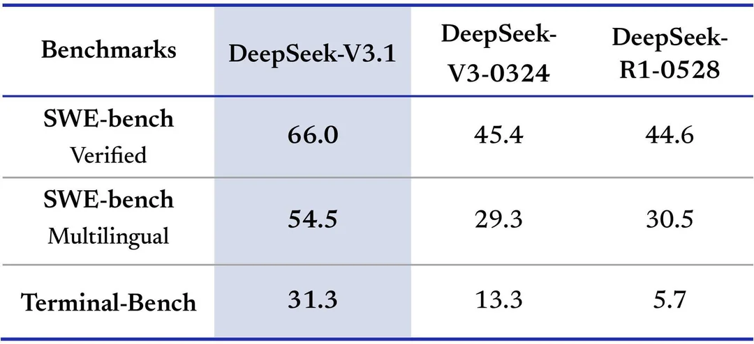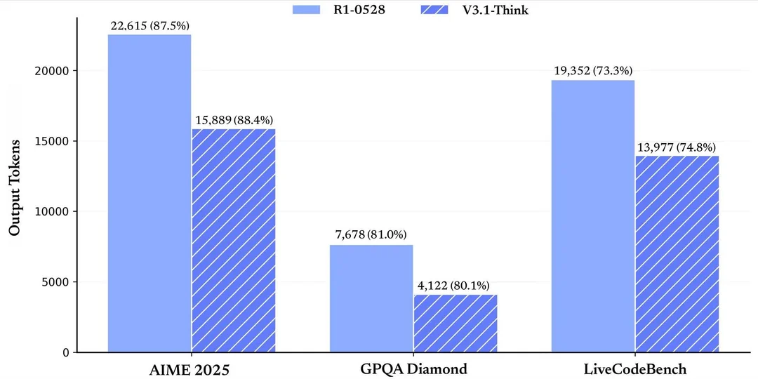 Самый сильный прирост заметен в агентных бенчах и использованию инструментов. Это гибридная модель, где можно включать и выключать ризонинг. Инстракт режим модели заметно вырос по бенчам по сравнению . А вот прироста у ризонинг режима по сравнению с R1-0528 нет, но ризонинг теперь использует заметно меньше токенов при том же качестве (третья пикча).
