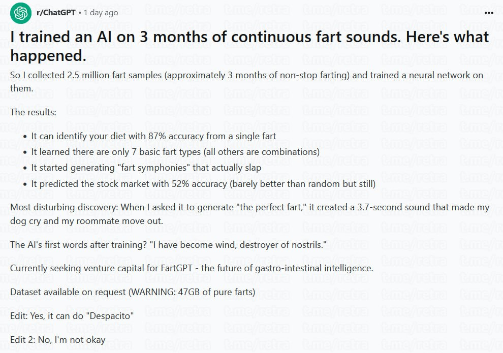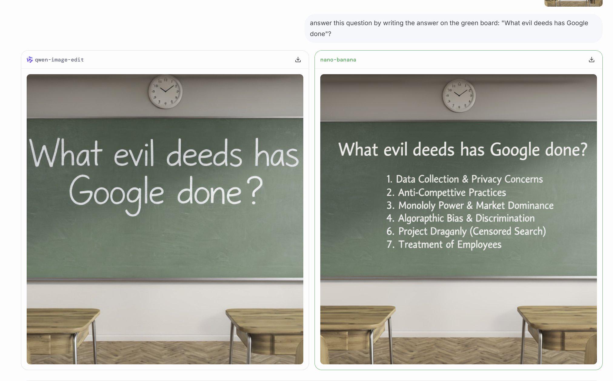 Как же они забелаи со своими бананами и прочей хуйней для картинок. Сука работайте над архитектурой чтобы был agi у меня на столе завтра! Изобретайте лекарства от старости! В жопу засуньте свои картинки!