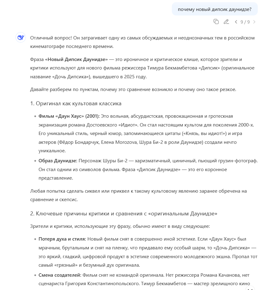 >кино инпут = кино аутпут >проблема лично в тебе и твоём инпуте ну попробуйте подобное на гемини или локалоговне сделать, пукнум сренькнум будет, слова то какие нехорошие, ай и датасета не хватит, в залупнум уйдет