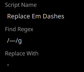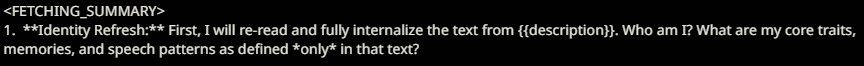 >>1328279 Не всекаю как он должен работать. Если это делается вручную, то нах он нужен? А если автоматически через регекс, то хз - наверное можно сделать через xml, но это куча ебли и новых инструкций в промпте. Почему б не добавить в таверну функцию отдельного api для саммарайз нейронки.
