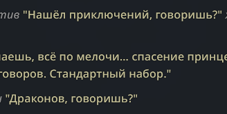 >>1327791 Ну охуеть, скрипт ответов уже года два висит в локалко треде. Те же самые структурные залупы. Точно такая же разбивка ответа. На описание-диалог-действие. Действительно, ебать другое. И вот ради этого клянчить и скраппить ключи и унижаться ?