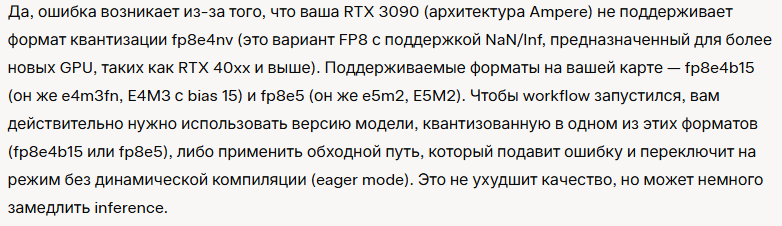 30ХХ воды, подскажите, у кого нибудь получалось прикрутить торч к вану 2.2? Всякое разное выбирал он предлагает модели которых в природе нет. АИ говорит что это и есть те самые модели которые нужны, но e4m3fn и e5m2 ту же ошибку выдают.