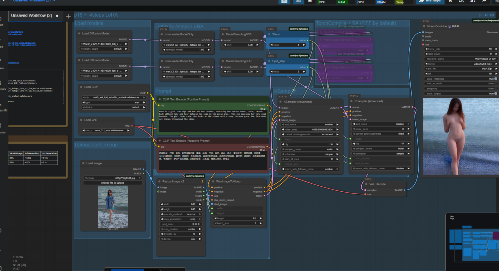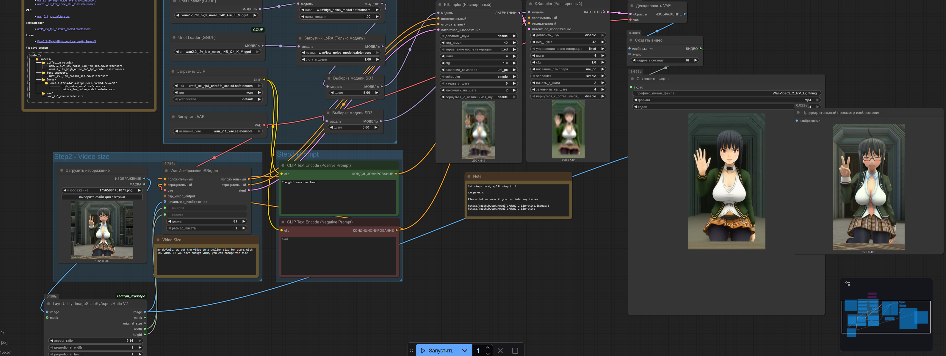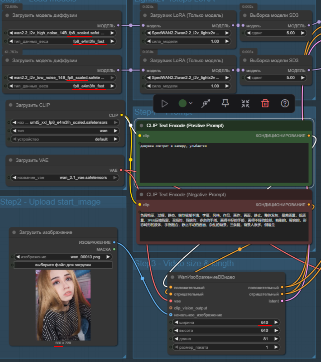 Бля почему в итоговом получается такая хуета? Если перевести на ван 2.1 то генерится всё как полагается. С ван 2.2 вокрфлоу конечный результат вообще не похож на оригинальный кадр.