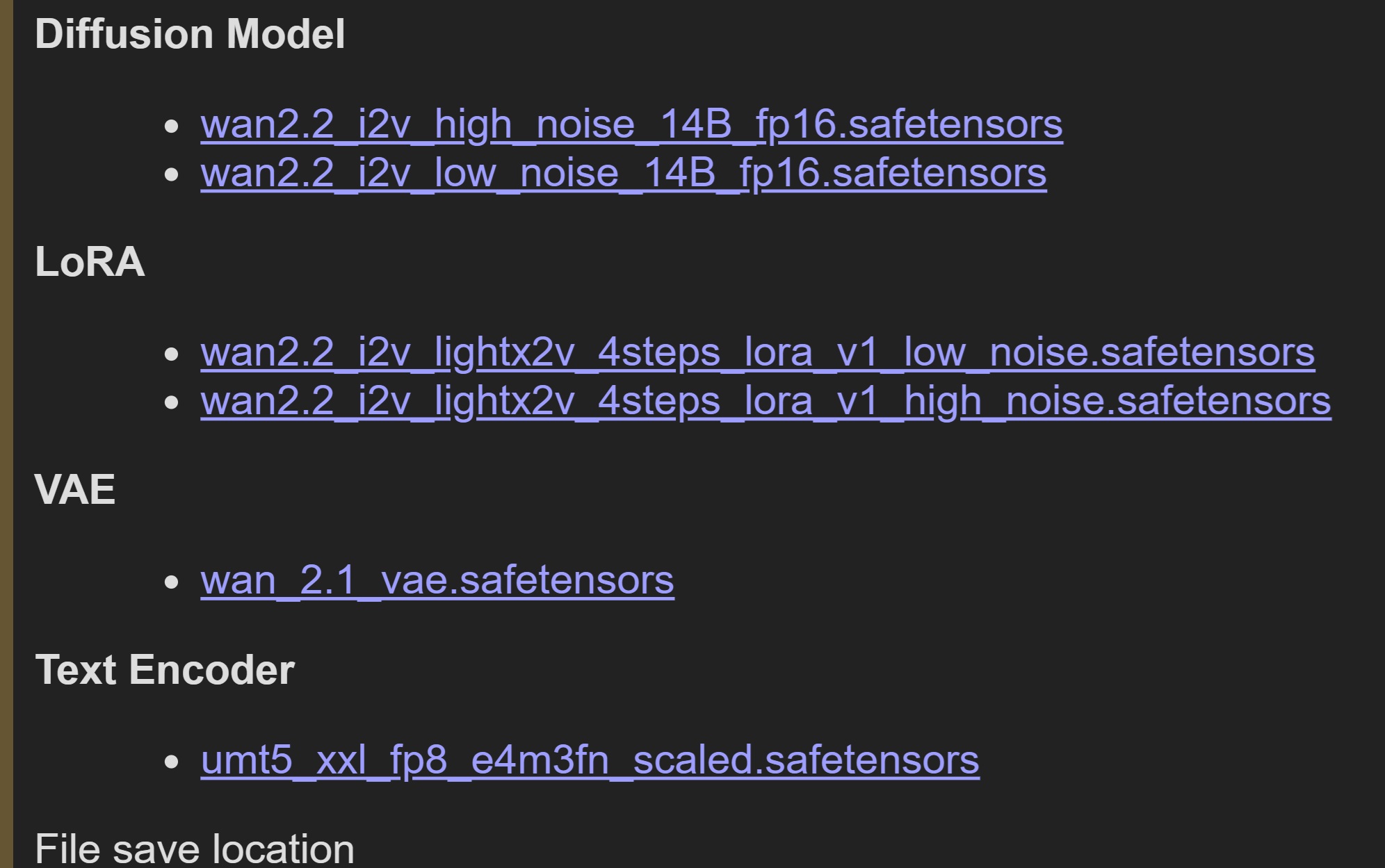----- clip = load_clip(<name>, type="wan") vae = load_vae(<name>) high = load_diffusion(<name>) low = load_diffusion(<name>) extra_loras = [load_lora(name, strength) for name, strength in ui.loras] pic = load_pic(ui.pic_path)