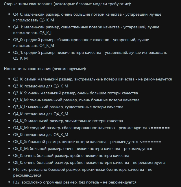 >>1340914 У Q4 меньшая точность, будет чуть больше шума и чуть меньше деталей - нужна для использования меньшего объема VRAM. Q8 будет лучше по качеству, fp16 - ещё чуть лучше.