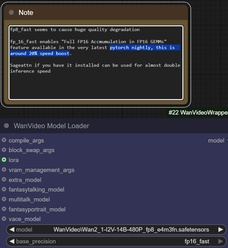 >>1330821 Как вообще определил что не работает? Какой вообще смысл от этих фаст версий? Почему бэйс пресижен фп16 фаст, а не бф 16? Почему модель е5м2, а не е4м3? Все эти вопросы не дают мне спокойно спать по ночам, все эти настройки перебирал так и не понял зачем все это. Знаю только что без е5м2 торч не заведется на 30хх серии, но сейчас на wan2.2 он вообще не заводится почему то, даже с е5м2, он типа подключен и даже что то там собирает предварительно (но не колеса) только скорость генерации одинаковая что с ним что без него.