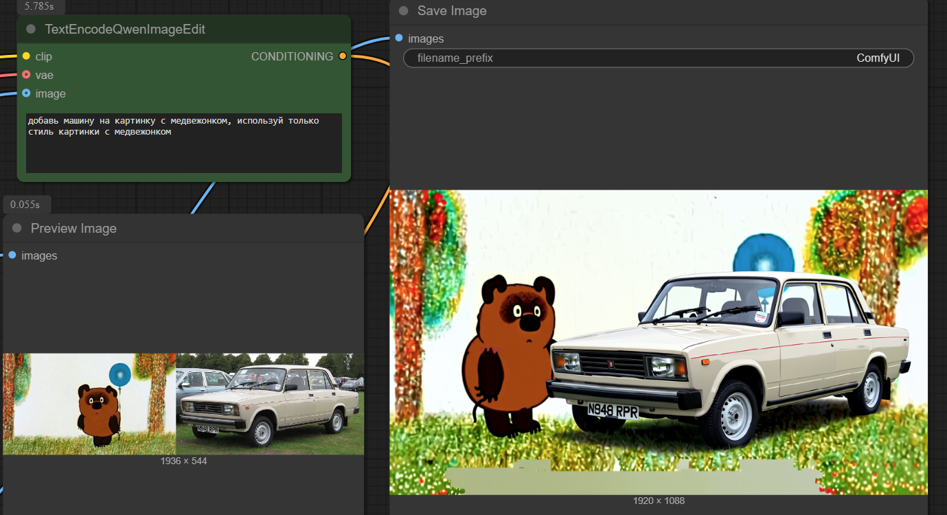 Но если тебе интересно, Qwen Image Edit спокойно не ограничивает себя заданной картиной, ты можешь как поменять картинку, так и использовать объект в картинке чтобы сделать новую картинку, при этом на совсем другом разрешении с другим соотношением сторон.