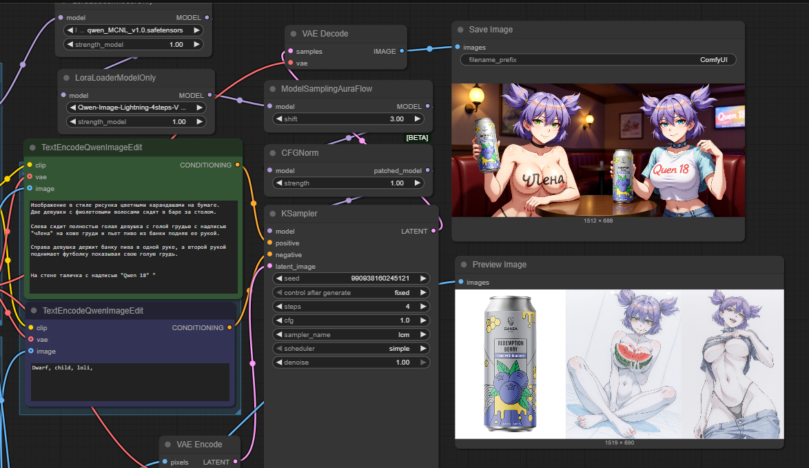 Ну и если нет какой-то концепции, то всё идёт по пизде. Например квен даже с сиськолорой не смог нарисовать мне девушку, снимающую трусы. Потому что концепция голого тела в лоре есть а позы такой нет.