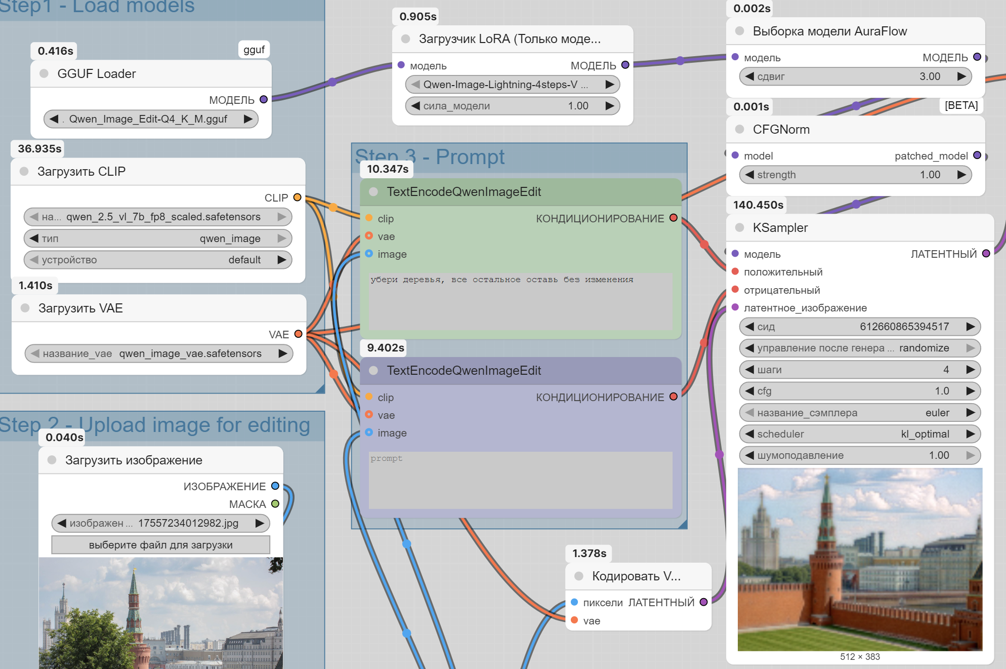 >>1331034 Сравнивать скорость надо по второй генерации, когда все модели уже в памяти (обычной). У меня она занимает 60-70 секунд на стандартном workflow из темплейтов comfy (там уже есть для qwen-edit) с 4-шаговой лорой. Правда, если все модели целиком в память не лезут - подгрузка, конечно, будет есть время...