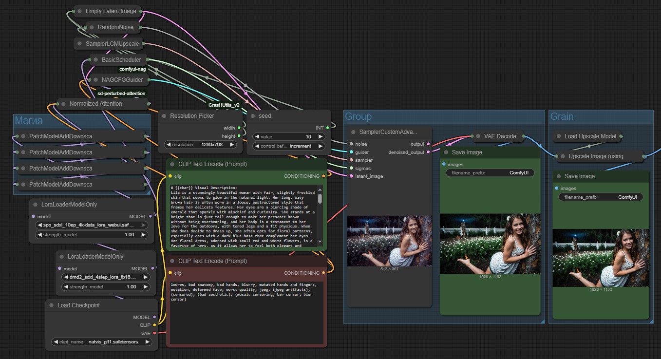 Воркфлоу в картинке. Натвиз дмд фулл-хд за 12 шагов. Всё, как мы любим? На шизо промпт не обращайте внимания - это случайно получилось так и решил оставить.