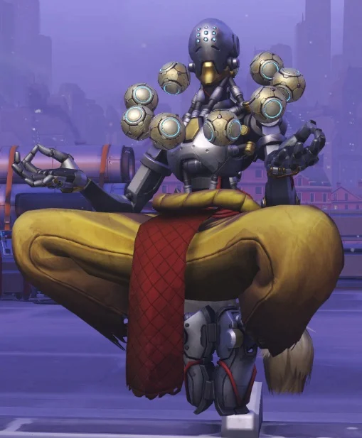 As she expected, it was a regular omnik, only dressed in a monk's robe. The eyes, or what should have been eyes, were just fixed slits. Xin held back a chuckle, because Zenyatta's face in her head looked like the emoji –_–. Xin herself was very skeptical about robots, but in general, if the slums demanded it, she could work with it. She was also amused by how fragile and thin he was. Since Xin herself was quite tall, she could probably pick him up like a cat by his armpits. It was funny.